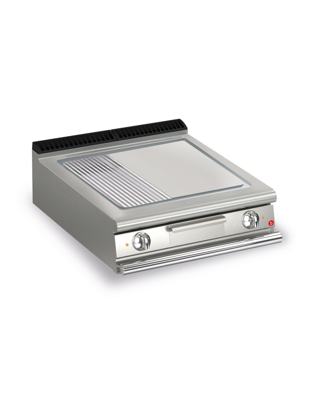 FRY TOP S Eléctrico M80 Placa de Acero Fresco - 1/3 Estriado - Termostato Versión Superior