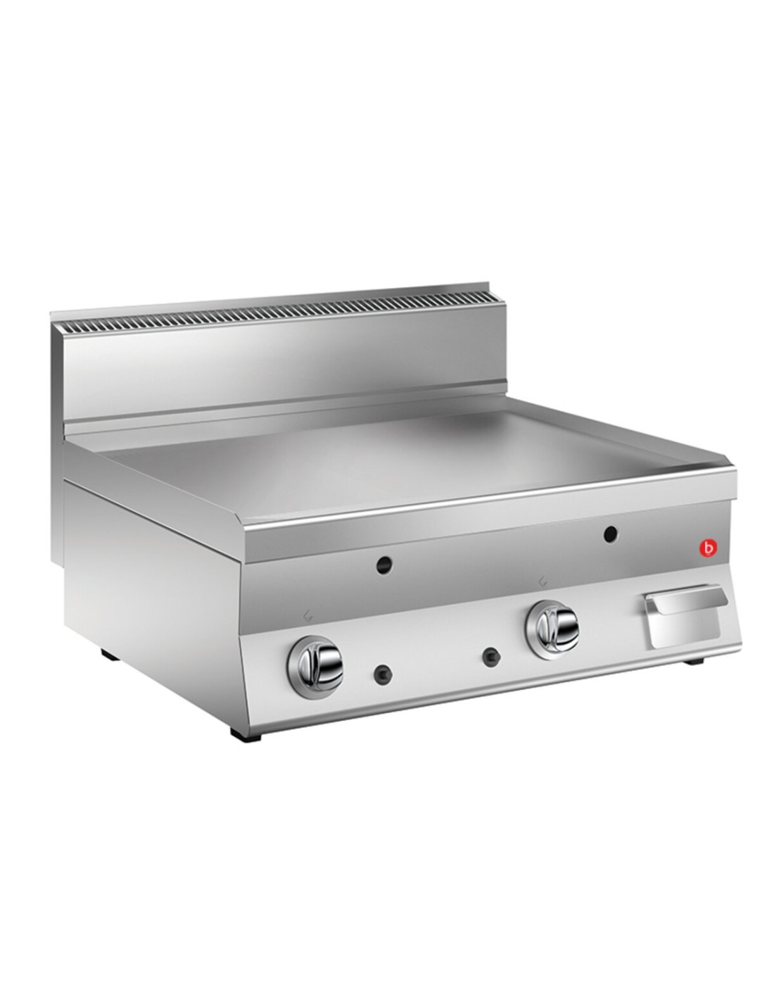 Los fry tops están equipados con una protección perimetral contra salpicaduras y una bandeja recogegotas extraíble.