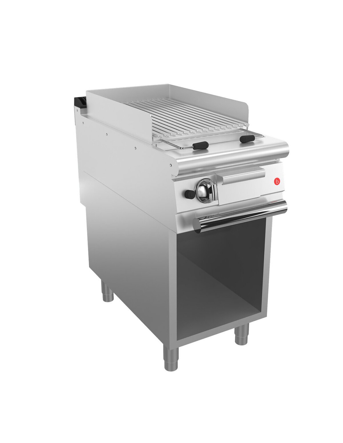 Parrillas de piedra de lava: 4 tipos de parrilla disponibles: carne, pescado, mixto en acero inoxidable y versión carne/pescado en hierro fundido reversible, Regulación de la altura de la parrilla para atender a los diferentes tipos de cocción, Más fácil de limpiar y más grande, Elevadores perimetrales antisalpicaduras, Canal con orificio de drenaje y cajón y recogida de grasa y residuos extraíble, Canal de recogida de grasa más ancho y soldado en la parte superior, Cajón interno para recogida de residuos de carbón, Temperatura regulable hasta 350°C, Control de potencia mediante grifo modulante de funcionamiento continuo para adaptar el calor de la placa al tipo de cocción, Accesorio HUMIDIFICADOR para una gestión óptima de más tipos de cocciónCarcasa exterior y pies de acero inoxidable.