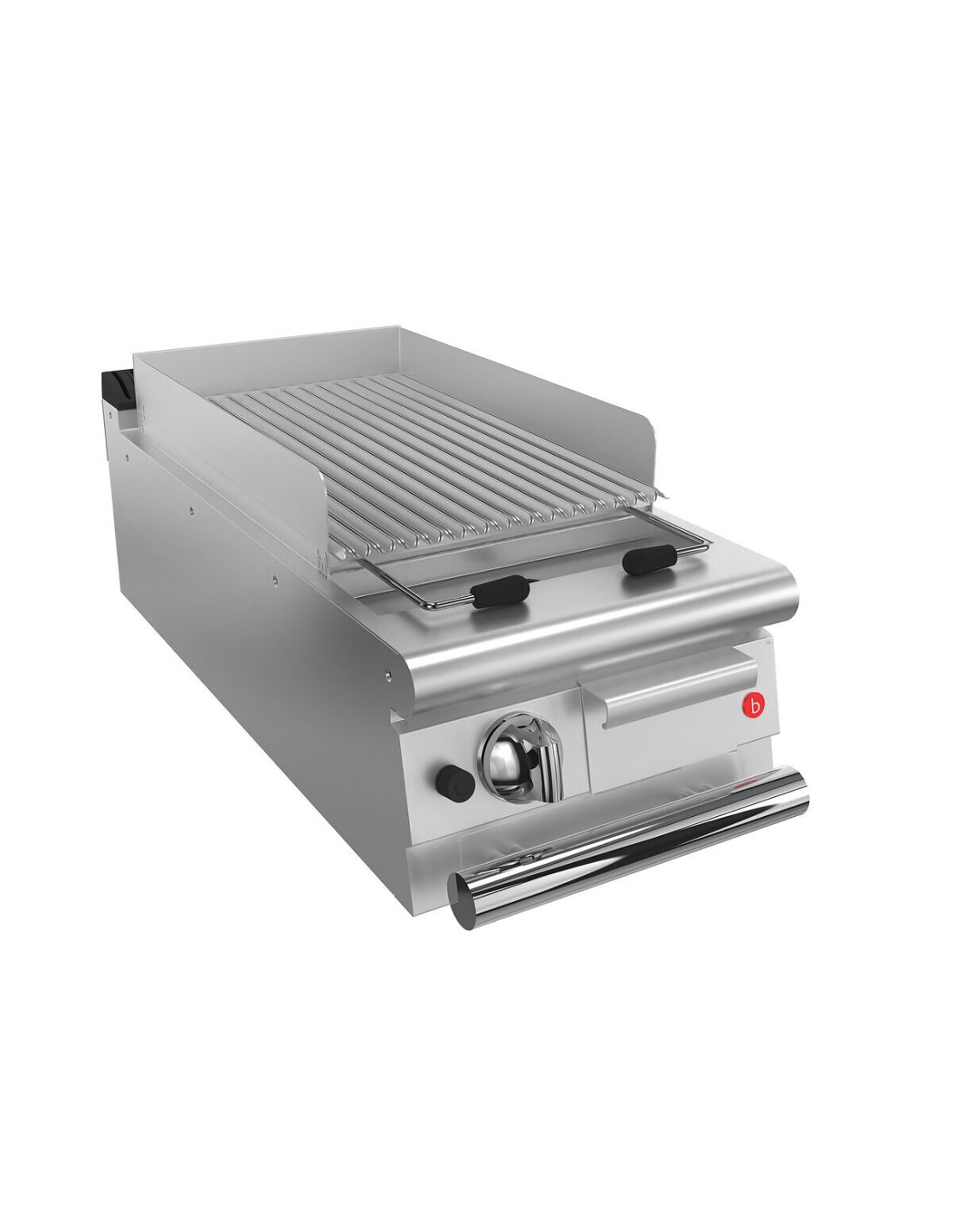 Parrillas de piedra de lava: 4 tipos de parrilla disponibles: carne, pescado, mixto en acero inoxidable y versión carne/pescado en hierro fundido reversible, Regulación de la altura de la parrilla para atender a los diferentes tipos de cocción, Más fácil de limpiar y más grande, Elevadores perimetrales antisalpicaduras, Canal con orificio de drenaje y cajón y recogida de grasa y residuos extraíble, Canal de recogida de grasa más ancho y soldado en la parte superior, Cajón interno para recogida de residuos de carbón, Temperatura regulable hasta 350°C, Control de potencia mediante grifo modulante de funcionamiento continuo para adaptar el calor de la placa al tipo de cocción, Accesorio HUMIDIFICADOR para una gestión óptima de más tipos de cocciónCarcasa exterior y pies de acero inoxidable. Altura de la mesa de trabajo regulable de 840 a 900 mm. Tapas de 2 mm de grosor. Quemador de acero Aisi 304 controlado por válvula de seguridad y termopar. Encendido piezoeléctrico. Temperatura regulable hasta 350°C. Dispositivo para ajustar la altura de las rejillas en dos niveles. Protectores perimetrales contra salpicaduras (h máx=12mm). Canal con orificio de drenaje y recogida extraíble de grasa y residuos. Cajón interior para la recogida de residuos residuos de carbono. Bandeja de grasa más grande y empotrada en la encimera, más fácil de limpiar y con más capacidad Accesorio HUMIDIFICADOR para una gestión óptima de varios tipos de cocción. Ajuste de la altura de la parrilla para distintos tipos de cocción 4 tipos de grill disponibles: carne, pescado, mixto de acero inoxidable y reversible de hierro fundido versión carne/pescado Cambiar el tipo de cocción también en la utilidad GAS Grill / piedra de lava, con accesorios dedicados En las versiones de gas, la potencia se regula mediante un grifo de variación continua para adaptar el calor de la placa al tipo de cocción