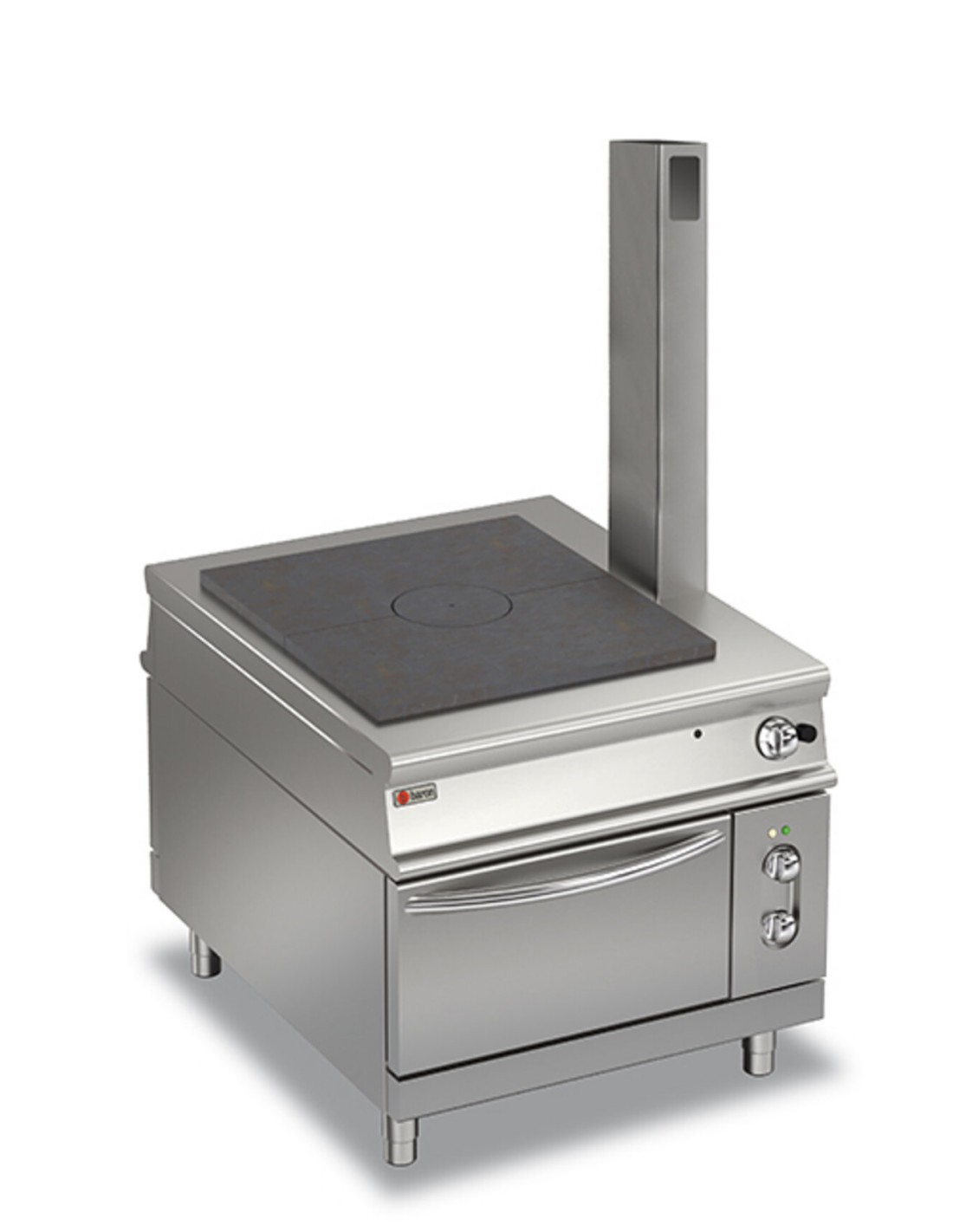 Revestimiento exterior de acero inoxidable y acabado Scotch Brite. Tapas de 2 mm de grosor. Salpicaderos contorneados con mandos inclinados hacia el operador. Placa de cocción de acero pulido. Calentamiento de la placa (4 zonas) mediante 4 resistencias de 4 kW. Regulación de la temperatura de las resistencias de 50 a 400°C mediante termostato. Indicador luminoso de actividad de calefacción.