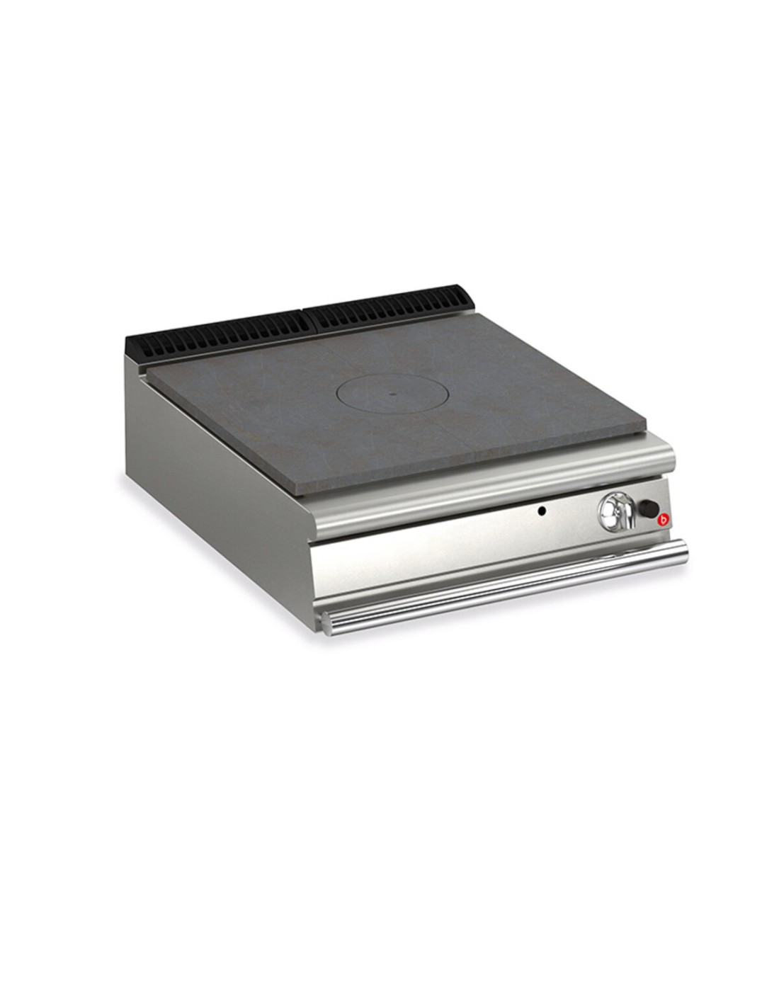 Placa de gas: Placa de hierro fundido con regulación de 50° a 450°C, encendido piezoeléctrico seguro, Quemador central único de alto rendimiento que da como resultado zonas de calor diferenciadas en la placa con una concentración de calor máximo en el centro y temperaturas decrecientes en las zonas periféricas. Placa de hierro fundido pulido con disco central extraíbleGAS