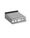 Placa de cocción totalmente eléctrica: Calentamiento de la placa mediante resistencias de 4 x 4 kW, Regulación de temperatura de 50 a 400 °C, Placa de cocción en voladizo con cubeta de grasa perimetral con orificio de drenaje, impermeable a chorros de agua (IPX5), Equipo certificado para directiva de baja tensión 2014/35/UE según esquema CB internacional.Placa de cocción de acero al cromo-molibdeno pulido de 1,8 cm de grosor, indeformable a altas temperaturas y apta también para la cocción directa.
