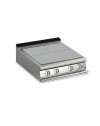 Placa de cocción totalmente eléctrica: Calentamiento de la placa mediante resistencias de 4 x 4 kW, Regulación de temperatura de 50 a 400 °C, Placa de cocción en voladizo con cubeta de grasa perimetral con orificio de drenaje, impermeable a chorros de agua (IPX5), Equipo certificado para directiva de baja tensión 2014/35/UE según esquema CB internacional.Placa de cocción de acero al cromo-molibdeno pulido de 1,8 cm de grosor, indeformable a altas temperaturas y apta también para la cocción directa.