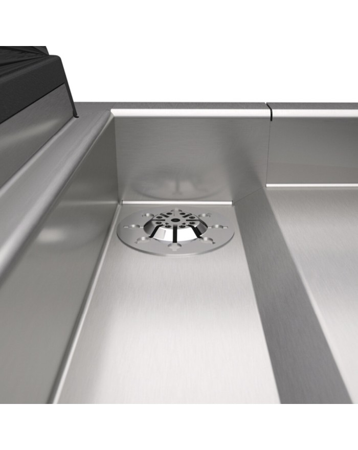 Wok gas: Robustas encimeras 20/10 con cubeta de gran capacidad, parte superior con desagüe de rebose en la esquina posterior derecha, bandeja para recoger los líquidos de rebose.