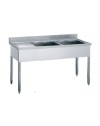 ENCIMERA DE ACERO INOXIDABLE 18/10 AISI 304 SB Altura 40 mm Salpicadero 100x15 mm Encastrado con escurridor moldeado, fregaderos soldados al tablero, con agujero de desagüe, colador y rebosadero