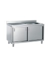 Ejecución en acero inoxidable Scotch-Brite.Encimera con bandeja moldeada. Contrahuella trasera h