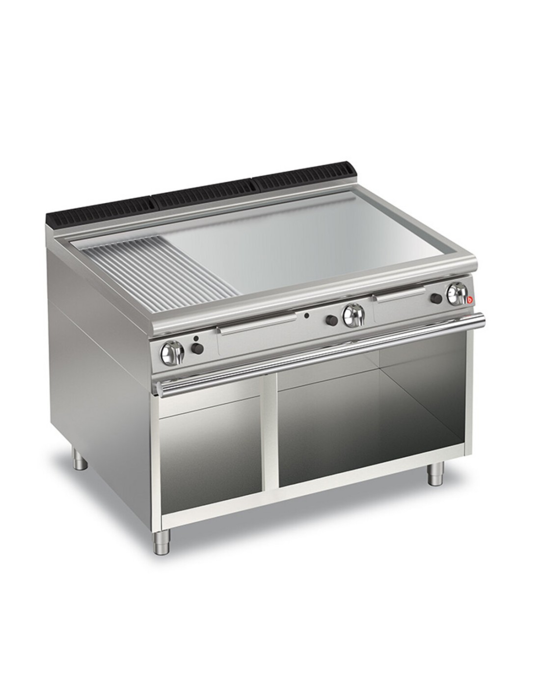 FRY TOP A GAS 2/3 LISO 1/3 ACANALADO PLACA AISI 430 EN COMPARTIMENTO ABIERTO - REGULADO POR TERMOSTATO