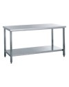 Mesa de acero AISI, resistente e higiénica, ideal para entornos comerciales o industriales. Diseño funcional con materiales resistentes y duraderos.