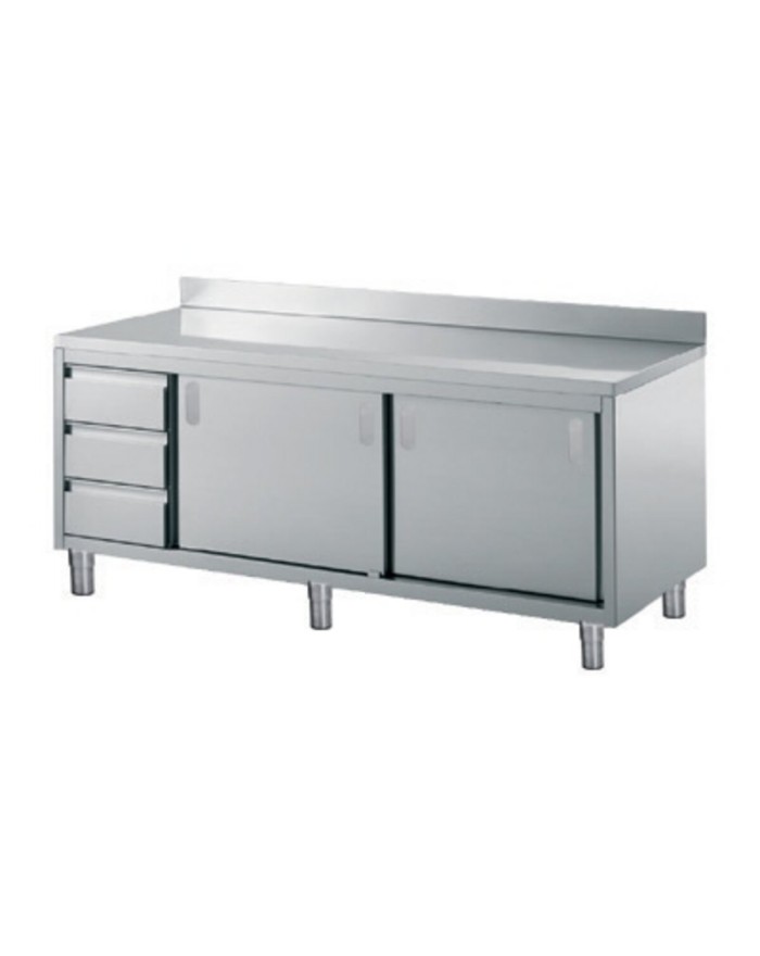 PLAN DE TRAVAIL EN ACIER INOXYDABLE 18/10 AISI 304 SB Hauteur 40 mm, Renforcé avec un panneau en bois stratifié, Dosseret 100x15 mm