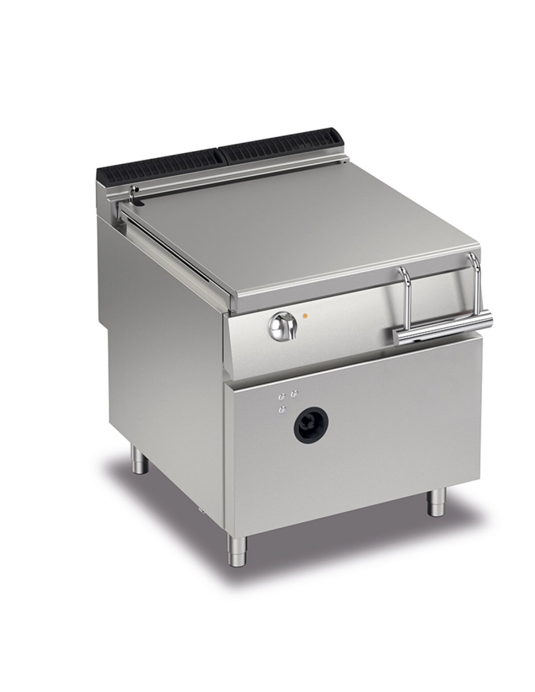 Réservoir basculant à grand rayon. Les 8 rangées de flammes du modèle M80 et les 12 du modèle M120 garantissent l'uniformité de la cuisson. Température de cuisson contrôlée par thermostat avec réglage de 100 à 280°C. Equipement certifié pour la directive basse tension 2014/35/EU selon le schéma CB international. Grâce à la certification de résistance aux jets d'eau (IPX5) obtenue à l'issue de tests spécifiques, les boutons et sous-boutons peuvent être lavés à la fin de la journée de travail sans compromettre la fonctionnalité et la sécurité. La barre frontale est un point d'appui confortable pour le cuisinier ; elle maintient une distance de sécurité par rapport au plan de travail et protège ainsi contre les collisions accidentelles avec ce qui repose sur les plans de travail et en même temps avec les poignees.