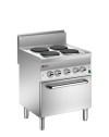 CUISINIÈRES ÉLECTRIQUES Également disponible en version améliorée avec toutes les plaques de 2,6 kW. Four électrique GN 1/1 statique ou ventilé avec température réglable de 110 à 280°C. Le four électrique de dimensions GN 1/1 est équipé de résistances blindées en haut et en bas avec régulation indépendante et thermostat réglable de 110 à 280°C.