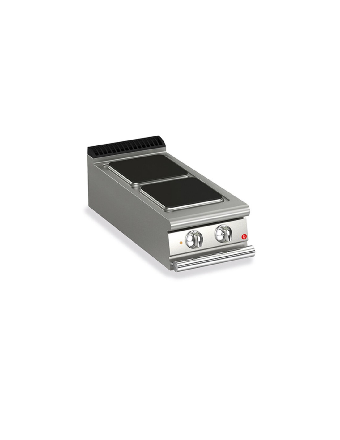 Cuisinières électriques : plaques en fonte 300x300 mm, puissance maximale 4 kW, thermostat de sécurité et sélecteur 7 positions, étanche aux jets d'eau (IPX5), Équipement certifié pour la directive basse tension 2014/35/UE selon le schéma CB international.Hob entièrement pressé et usiné à partir d'une seule feuille d'acier inoxydable épais.
