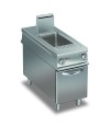 Revêtements extérieurs en acier inoxydable et finition Scotch Brite. Plateaux d'une épaisseur de 2 mm. Des tableaux de bord profilés avec commandes orientées vers l'opérateur. Bacs moulés avec coins arrondis, en acier inoxydable AISI 316 pour une résistance maximale à la corrosion. Sortie d'eau et vidange au sol en acier inoxydable. VERSION GAZ Chauffage par brûleur en acier inoxydable placé à l'extérieur de la cuve. Robinet thermostatique avec thermocouple de sécurité. Allumage piézoélectrique. VERSION ÉLECTRIQUE Chauffage par élément chauffant blindé situé dans le réservoir. Température contrôlée par thermostat, sélectionnable de 60° à 90°C (préchauffage) ou en position de chauffage continu. Thermostat de sécurité.