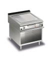 Plan de cuisson : plaque de cuisson de 15 mm d'épaisseur totalement indépendante de la table de cuisson, Grand canal d'évacuation sur tout le périmètre de la plaque pour la collecte des résidus de cuisson, incliné vers l'avant pour l'évacuation des liquides dans le grand tiroir de récupération des graisses, Plaque non soudée pour un entretien rapide et un éventuel remplacement en cours d'utilisation, Homogénéité thermique, Coupure thermique qui facilite le travail de l'utilisateur et des machines adjacentes et réduit la consommation de 15 % par rapport aux modèles traditionnels.