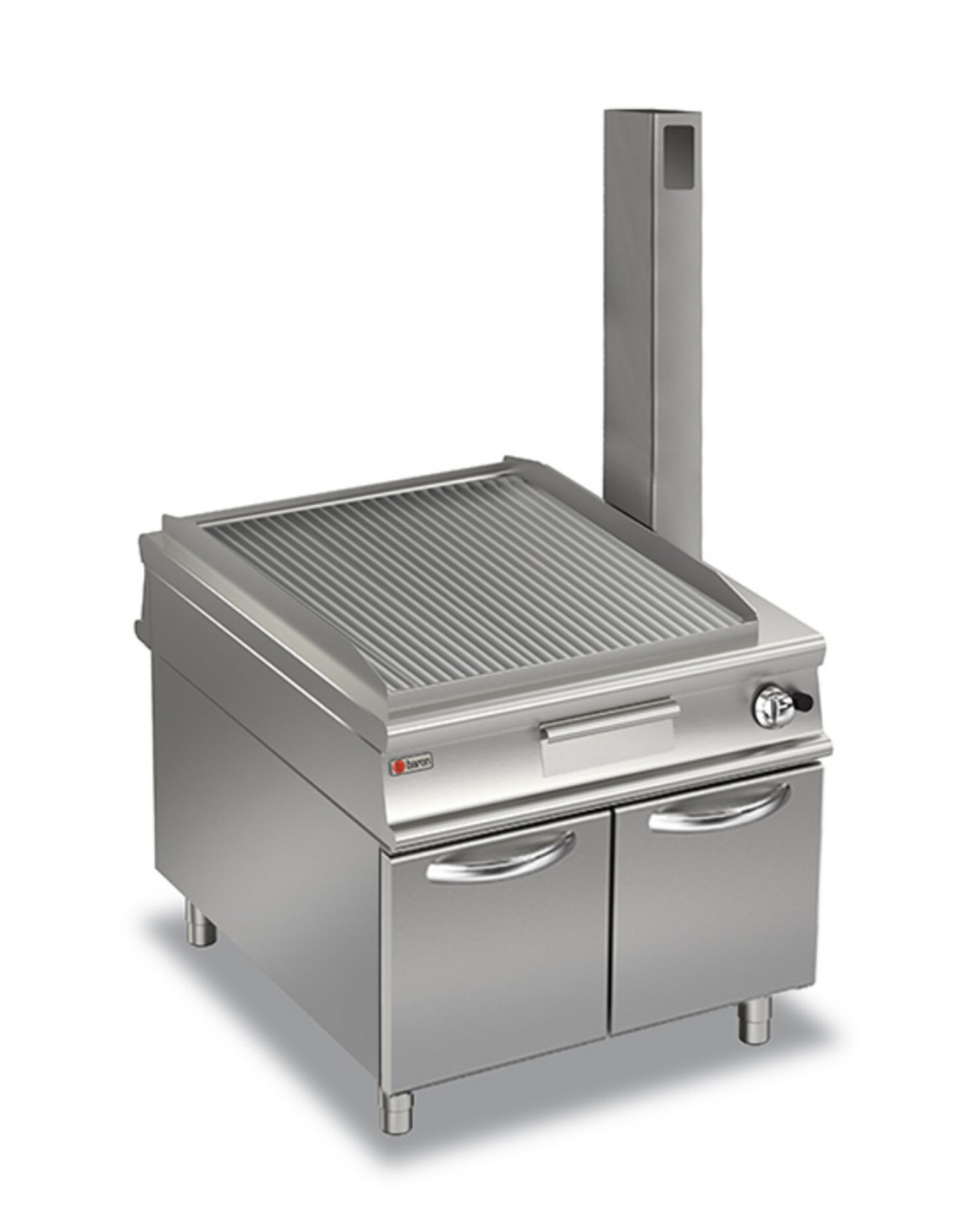 FRY-TOP À PLAQUE RAYÉE À TRAVERS LE GAZ - SUR COMPARTIMENT AVEC PORTES