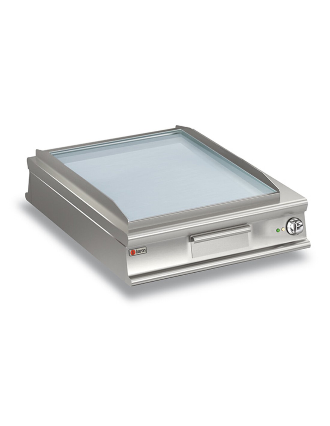 Revêtements extérieurs en acier inoxydable et finition Scotch Brite. Plateaux d'une épaisseur de 2 mm. Des tableaux de bord profilés avec commandes orientées vers l'opérateur. Plaque de cuisson en fer doux (plaque normale), revêtue de chrome dur poli (plaque chromée). Grand tiroir de récupération des graisses. Chauffage au moyen d'éléments chauffants en incoloy blindés. Température de cuisson thermostatée et réglable de 50 à 300°C. Thermostat de sécurité.