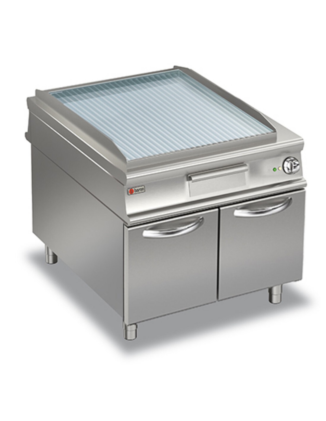 FRITEUSE ÉLECTRIQUE TRAVERSANTE PLAQUE CHROMÉE RAYÉE - SUR COMPARTIMENT AVEC PORTES