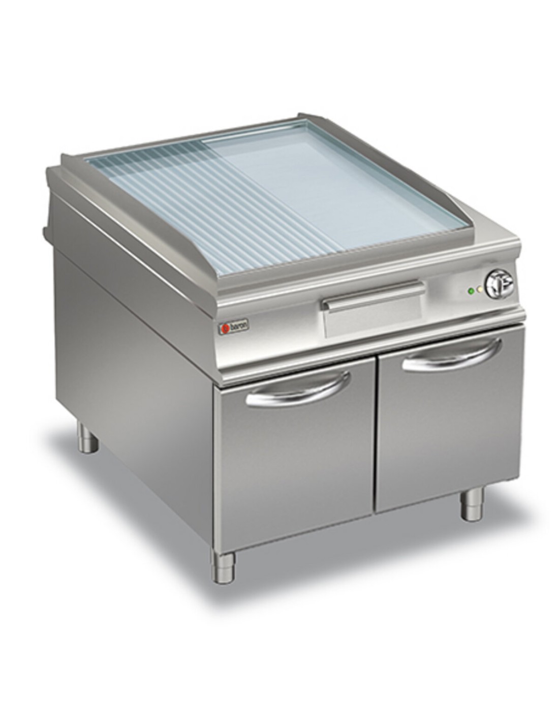 PLAQUE DE FRITURE ÉLECTRIQUE TRAVERSANTE 1/2 LISSE 1/2 STRIÉE CHROMÉE - SUR COMPARTIMENT AVEC PORTES
