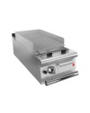 Grilles en pierre de lave : 4 types de grilles disponibles : viande, poisson, mixte en version inox et fonte réversible viande/poisson, Réglage de la hauteur du gril pour faire face aux différents types de cuisson, Plus facile à nettoyer et plus grand, Elévateurs de protection contre les éclaboussures périphériques, Canal avec trou d'évacuation et tiroir et récupération extractible des graisses et des résidus, Canal de récupération des graisses plus large et soudé sur la partie supérieure, Tiroir interne pour la récupération des résidus de carbone, Température réglable jusqu'à 350°C, Réglage de la puissance par robinet modulant à fonctionnement continu pour adapter la chaleur de la plaque au type de cuisson, Accessoire HUMIDIFICATEUR pour une gestion optimale d'un plus grand nombre de types de cuissonRevêtements extérieurs et pieds en acier inoxydable.