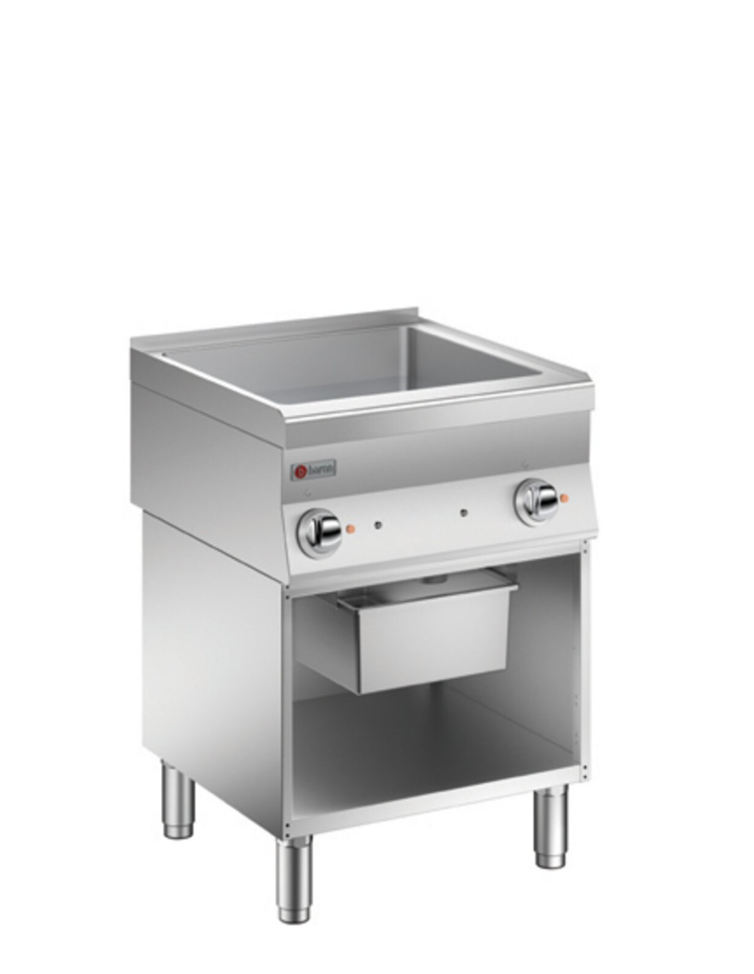 La braisière multifonction est l'appareil idéal et peut être utilisée à la fois comme fry top ainsi que comme braisière. Elle est équipée d'une cuve en acier inoxydable AISI 304. Le chauffage est assuré par un élément chauffant électrique avec thermostat de sécurité et voyant de fonctionnement. La vidange de la cuve s'effectue au moyen d'un trou de vidange, fermé par un bouchon en acier inoxydable.