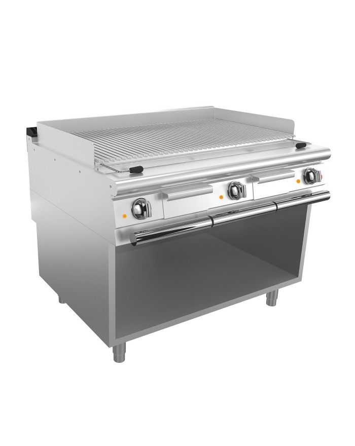 Grils électriques professionnels Dispositif permettant de régler la hauteur des grils sur deux niveaux. Canal avec trou d'évacuation et tiroir amovible de récupération des graisses et des résidus. Tiroir interne pour la récupération des résidus. 4 types de grilles disponibles : viande, poisson, mixte en acier inoxydable et réversible en fonte viande/poisson ACCESSOIRES DE GRILL, HUMIDIFICATEUR, FUMOIRRevêtements extérieurs et pieds en acier inoxydable. Hauteur de la table de travail réglable de 840 à 900 mm. Plateaux d'une épaisseur de 2 mm. Brûleur en acier Aisi 304 contrôlé par soupape de sécurité et thermocouple. Allumage piézoélectrique. Température réglable jusqu'à 350°C. Dispositif de réglage de la hauteur des grilles sur deux niveaux. Protections anti-éclaboussures périmétriques (h max=12mm). Canal avec trou de drainage et collecteur de graisse et de résidus amovible. Tiroir interne pour la collecte des résidus résidus de carbone. Bac à graisse plus grand et encastré dans le plan de travail, plus facile à nettoyer et plus spacieux Accessoire HUMIDIFICATEUR pour une gestion optimale de plusieurs types de cuisson. Réglage de la hauteur du gril pour répondre aux différents types de cuisson 4 types de gril disponibles : viande, poisson, mixte inox et réversible fonte viande/poisson Version électrique avec éléments chauffants inclinables pour faciliter le processus de nettoyage