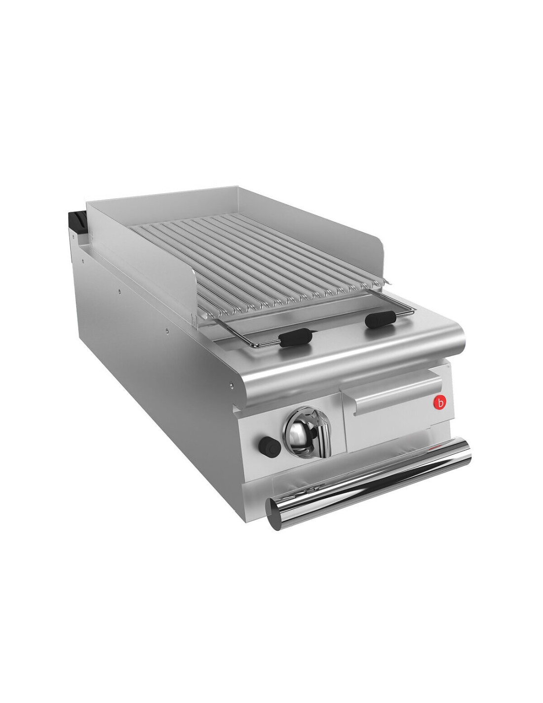 Grils à gaz : 4 types de grils disponibles : viande, poisson, mixte en version inox et fonte réversible viande/poisson, Réglage de la hauteur du gril pour répondre aux différents types de cuisson, Plus facile à nettoyer et plus grand, Elévateurs de protection contre les éclaboussures sur le périmètre, Canal avec trou d'évacuation et tiroir et collecteur de graisse et de résidus amovible, Canal de collecte des graisses plus large et soudé sur le dessus, Tiroir interne pour la collecte des résidus de carbone, Température réglable jusqu'à 350°C, Réglage de la puissance par robinet modulant à fonctionnement continu pour adapter la chaleur de la plaque au type de cuisson, Accessoire HUMIDIFICATEUR pour une gestion optimale d'un plus grand nombre de types de cuisson