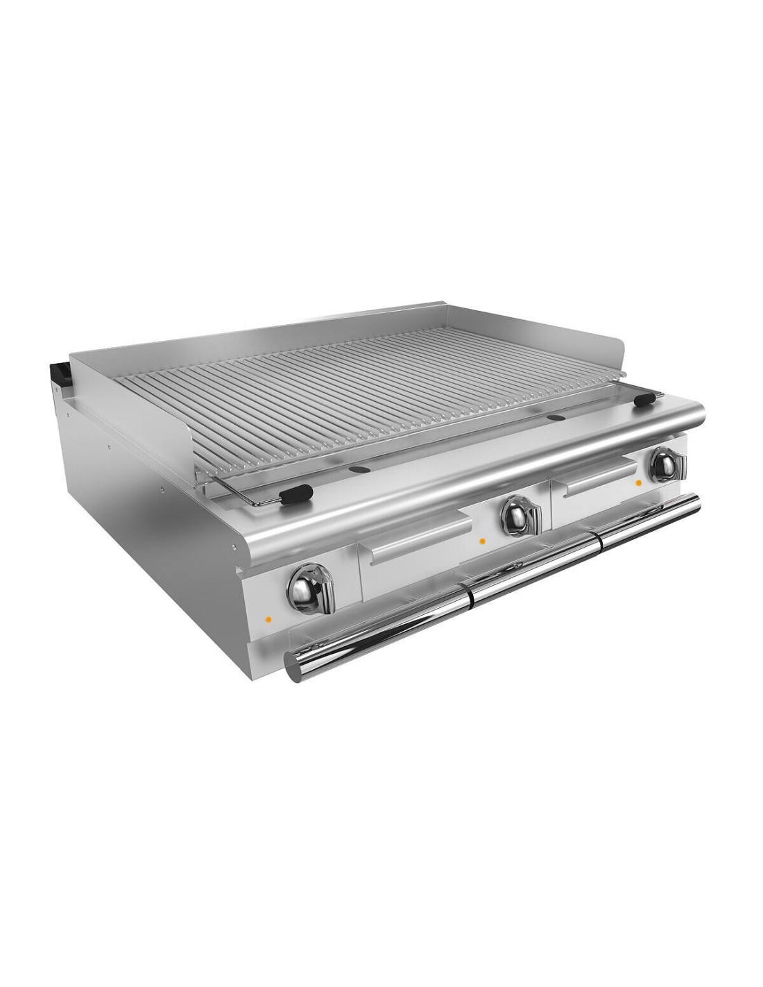 Grils électriques professionnels Dispositif permettant de régler la hauteur des grils sur deux niveaux. Canal avec trou d'évacuation et tiroir amovible de récupération des graisses et des résidus. Tiroir interne pour la récupération des résidus. 4 types de grilles disponibles : viande, poisson, mixte en acier inoxydable et réversible en fonte viande/poisson ACCESSOIRES DE GRILL, HUMIDIFICATEUR, FUMOIRDispositif de réglage de la hauteur de la grille sur deux niveaux. Canal avec trou de drainage et collecteur de graisse et de résidus amovible. Tiroir interne pour la collecte des résidus. 4 types de gril disponibles : viande, poisson, mixte inox et réversible fonte viande/poisson ACCESSOIRES GRILL, HUMIDIFICATEUR, FUMEUR : Toujours disponibles en tant qu'accessoires pour toutes les versions. Changement de type de cuisson également dans l'utilitaire GAS Grill / pierre de lave, avec accessoires dédiés Dans les versions à gaz, la puissance est régulée par un robinet à réglage continu pour adapter la chaleur de la plaque au type de cuisson Bac à graisse plus grand et encastré dans le plan de travail, plus facile à nettoyer et plus spacieux Accessoire HUMIDIFICATEUR pour une gestion optimale de plusieurs types de cuisson. Réglage de la hauteur du gril pour répondre aux différents types de cuisson 4 types de gril disponibles : viande, poisson, mixte inox et réversible fonte viande/poisson Version électrique avec éléments chauffants inclinables pour faciliter le processus de nettoyage