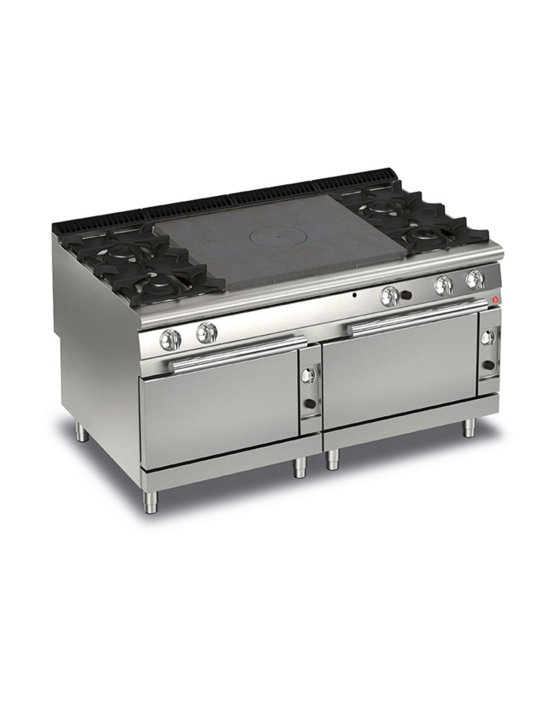 Plaque de cuisson tout gaz : Plaque de cuisson en fonte avec régulation de 50° à 450°C, allumage piézoélectrique sûr, brûleur central unique à haut rendement permettant de différencier les zones de chaleur sur la plaque avec une concentration de chaleur maximale au centre et des températures décroissantes dans les zones périphériques. Plaque en fonte polie avec disque central amovibleGAZ