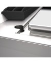 Plaque de cuisson tout électrique : Chauffage de la plaque au moyen de 4 éléments chauffants de 4 kW, Régulation de la température de 50 à 400 °C, Plaque de cuisson en porte-à-faux avec bac à graisse périphérique avec trou d'évacuation, imperméable aux jets d'eau (IPX5), Équipement certifié pour la directive basse tension 2014/35/UE selon le schéma CB international.