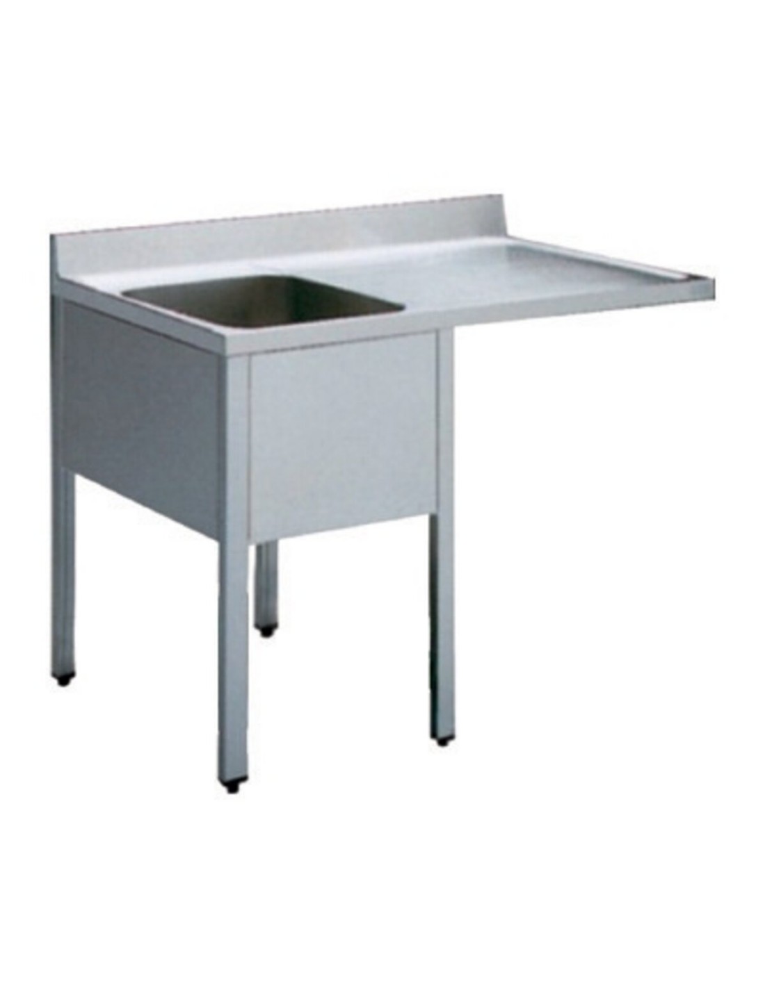 PLAN DE TRAVAIL EN ACIER INOXYDABLE 18/10 AISI 304 SB Hauteur 40 mm Dosseret 100x15 mm Encastré avec égouttoir moulé, cuves soudées au plan, avec trou d'évacuation, crépine, et trop-plein