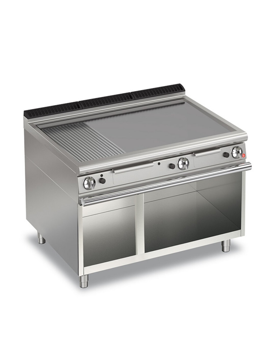 GAS FRY TOP 2/3 LISSE 1/3 PLAQUE RAINURÉE SUR COMPARTIMENT OUVERT - THERMOSTATÉ