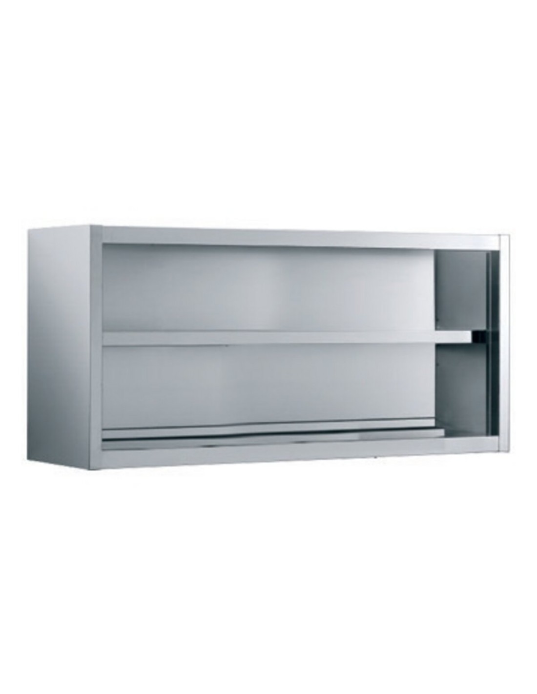 Exécution en acier inoxydable Scotch-Brite. Tablette intérieure réglable en hauteur et rabattable sans risque pour les mains. Livré avec des supports pour le montage mural.