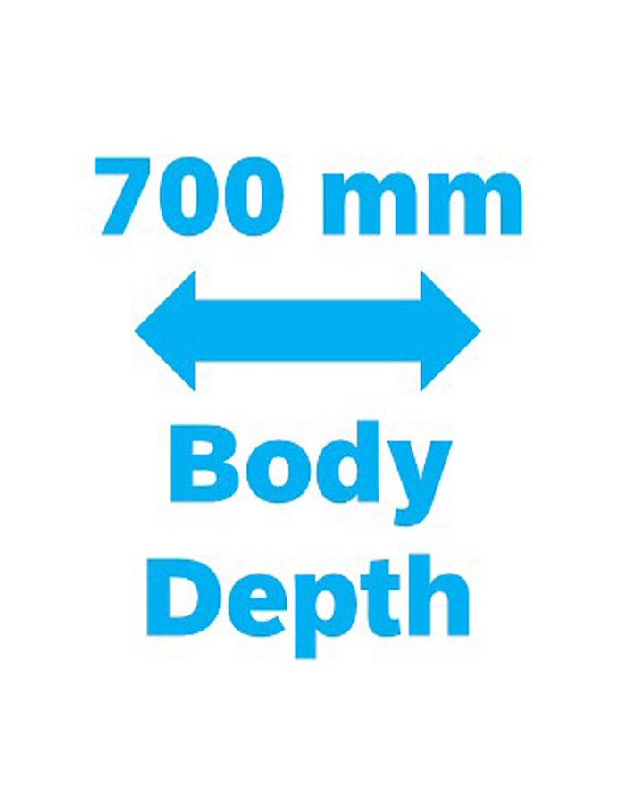 Profondeur du corps 700 mm pour correspondre aux dimensions standard les plus courantes dans les cuisines professionnelles et permettre l'installation dans des espaces restreints.