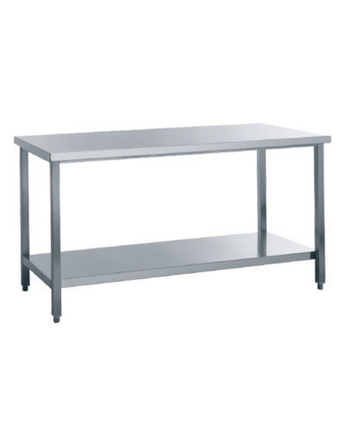 Table en acier AISI, robuste et hygiénique, idéale pour les environnements commerciaux ou industriels. Design fonctionnel avec des matériaux résistants et durables. Cadre en acier inoxydable 18/10 AISI 304, robuste et brossé, avec section tubulaire 40x40 mm, avec des dimensions en retrait de 20 mm sur les quatre côtés du plan de travail. Cette conception offre non seulement une structure solide, mais aussi un aspect raffiné et fonctionnel dans le contexte d'utilisation, en garantissant la durabilité et l'hygiène. Le plan de travail en acier inoxydable AISI 304 SB de 40 mm d'épaisseur offre solidité et durabilité. Le dosseret de 100x15 mm ajoute style et fonctionnalité, complétant l'aspect pratique et élégant. L'étagère inférieure en acier inoxydable AISI 304 est dotée d'un renfort longitudinal central pour une plus grande solidité. Installée à 150 mm du sol, elle offre une praticité et une solidité idéales. Exécution en acier inoxydable Scotch-Brite. Plan de travail rabattable sans risque pour les mains. Dessous de table renforcé, hydrofuge et insonorisant. Pieds en tube carré 40x40 mm, pieds réglables. Peut être équipé d'une étagère, d'un cadre à trois côtés, de tiroirs et de roulettes.