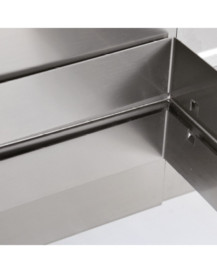 Le piastre sono dotate di paraspruzzi in modo da assicurare una perfetta pulizia ed igienicità del piano di cottura. Il piano di lavoro è leggermente inclinato in modo da convogliare sughi, grassi e condimenti, nell’apposito cassetto di raccolta ad ampia capacità.