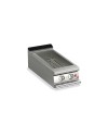 Temperatura regolabile in vasca con troppo pieno e falsofondo forato per appoggio recipienti. Vasca a misura GN.
