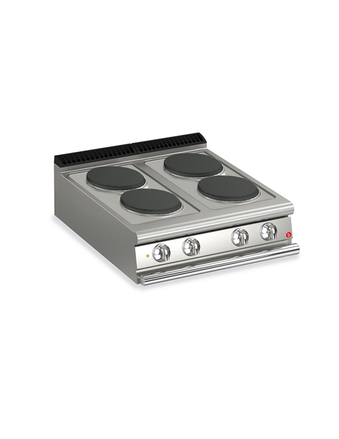 Cucine elettriche: Piastre in ghisa da 300x300 mm, potenza massima 4 kW, termostato di sicurezza e selettore a 7 posizioni, impermeabilità ai getti d’acqua (IPX5), Attrezzatura certificata per direttiva bassa tensione 2014/35/EU secondo lo schema internazionale CB.Piano di cottura interamente stampato e ricavato da un’unica lastra di acciaio inossidabile di grosso spessore.
