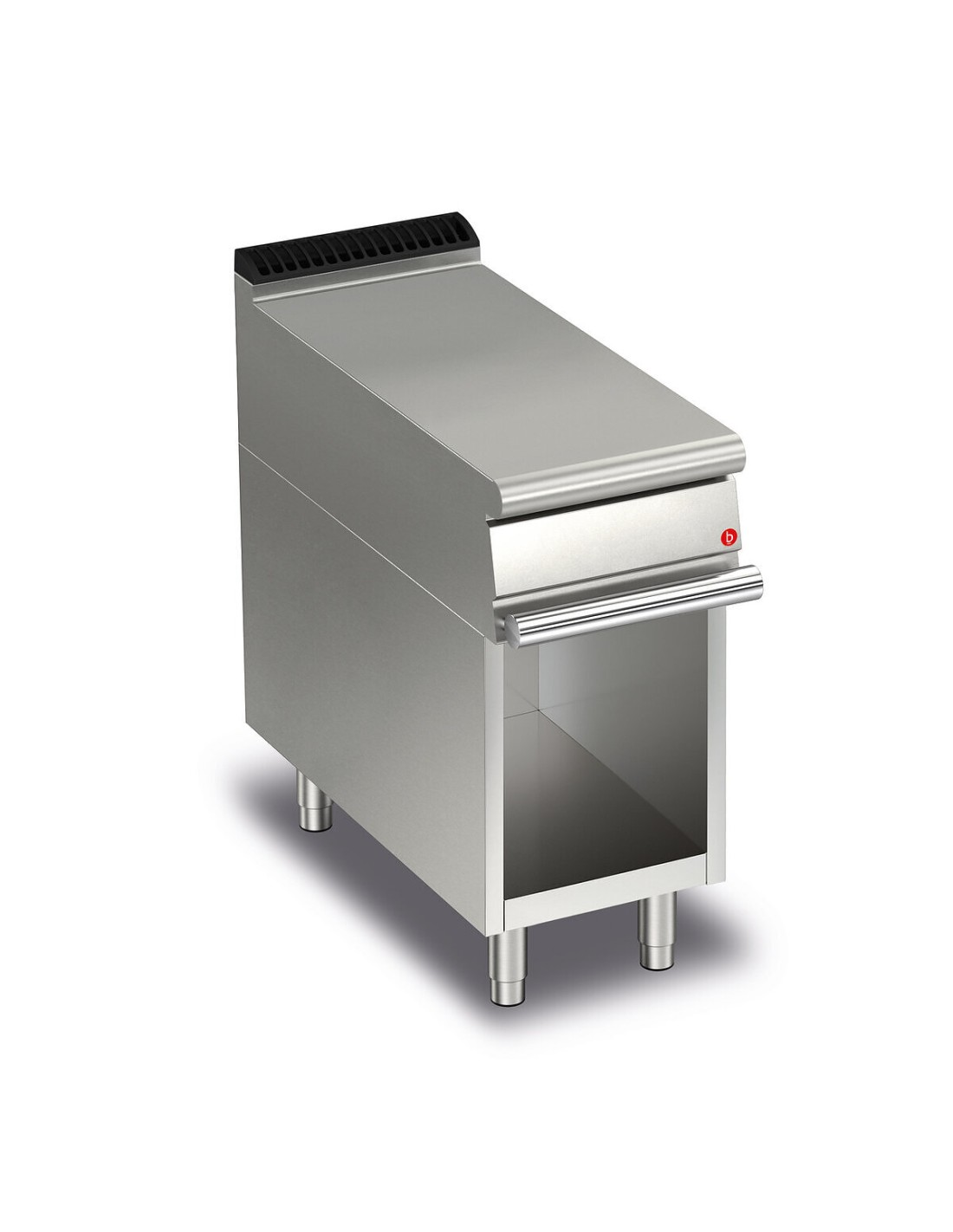 Cassetto montato su guide telescopiche inox scorrevoli su cuscinetti a sfera.