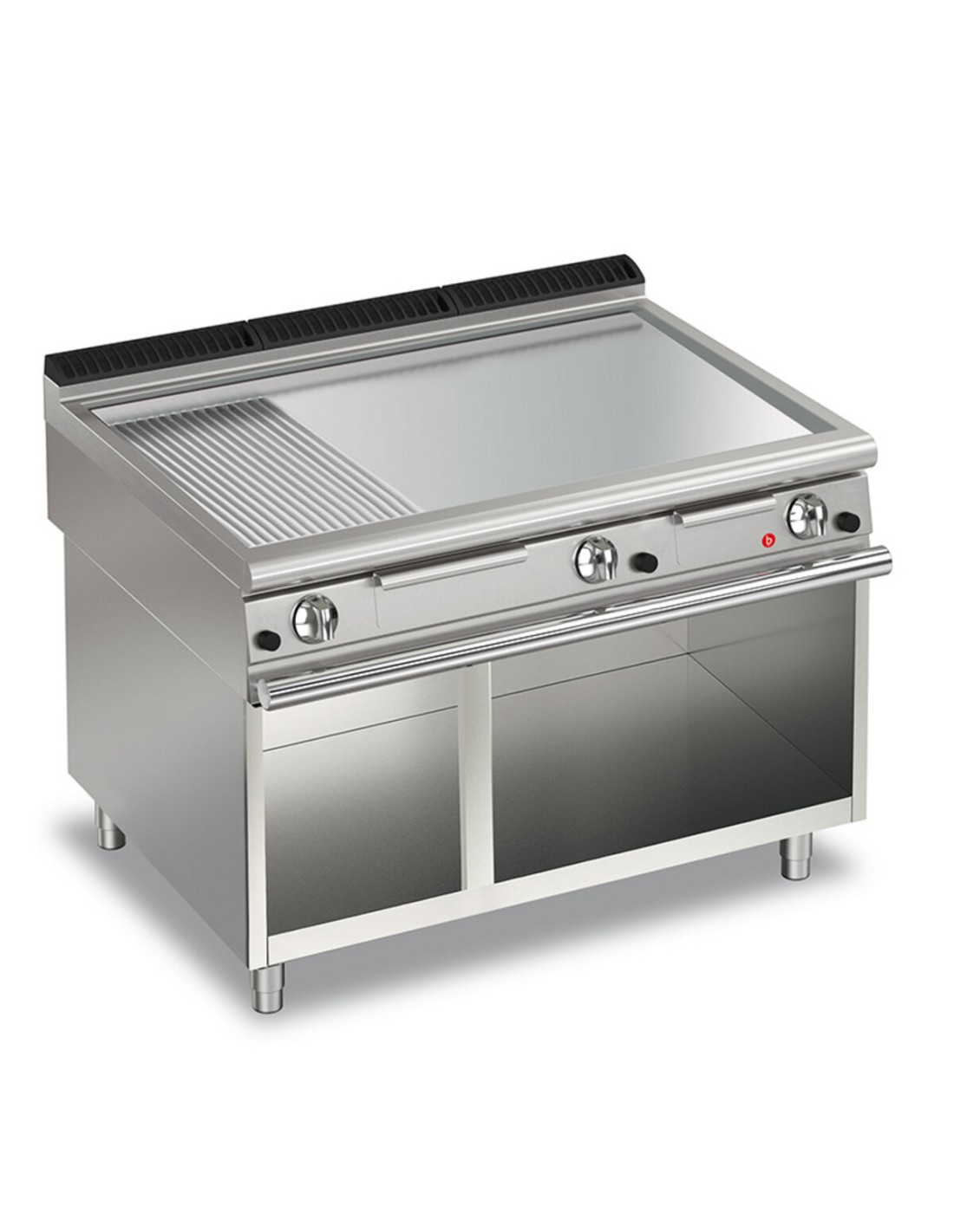 FRY TOP A GAS PIASTRA 2/3 LISCIA 1/3 RIGATA AISI 430 SU VANO A GIORNO - TERMOSTATATO