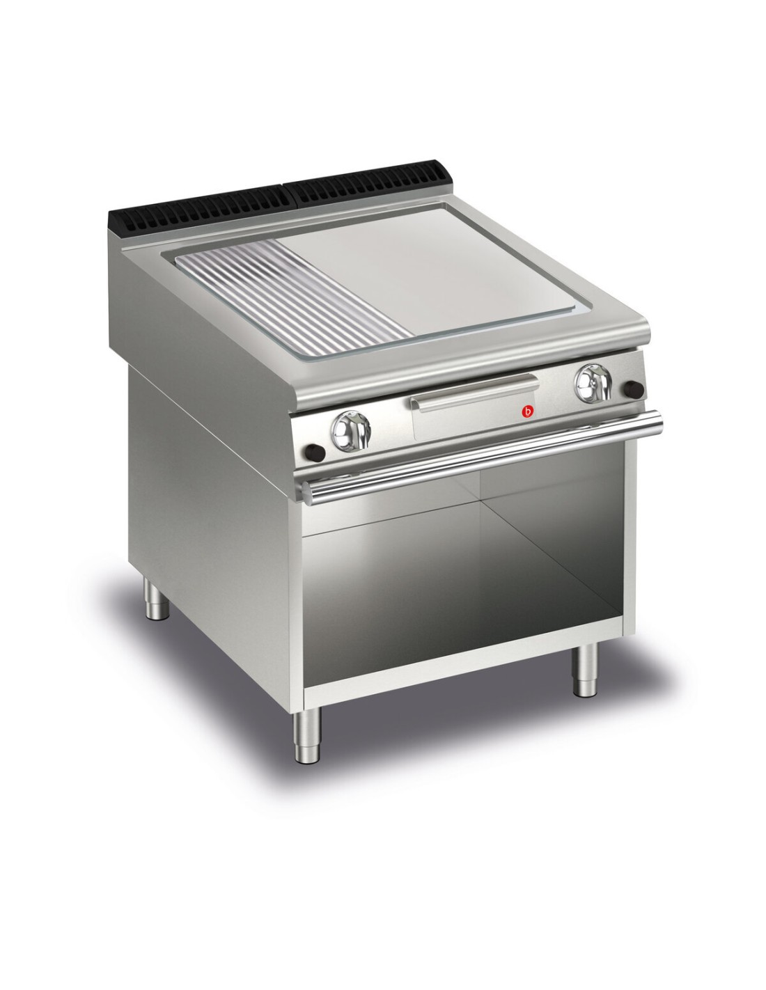 Canalina allagabile per la raccolta dei residui di cottura su tutto il perimetro della piastra pulizia facilitata, e migliore mantenimento dell’umidità dei cibi in cottura.