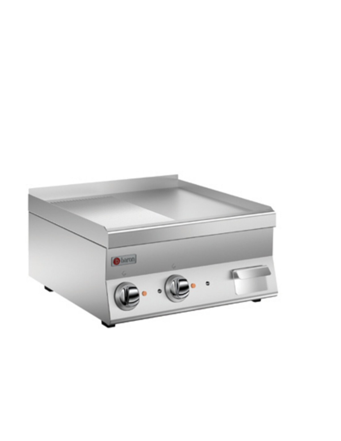 Le piastre sono dotate di paraspruzzi in modo da assicurare una perfetta pulizia ed igienicità del piano di cottura. Il piano di lavoro è leggermente inclinato in modo da convogliare sughi, grassi e condimenti, nell’apposito cassetto di raccolta ad ampia capacità.
