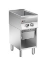 La brasiera multifunzione é l’apparecchiatura ideale per essere utilizzata sia come fry-top che come brasiera ed é dotata di vasca in acciaio inox AISI 304. Il riscaldamento avviene tramite resistenza elettrica con termostato di sicurezza e spia di funzionamento. Lo scarico della vasca avviene per mezzo di foro di scarico di diametro adeguato chiuso da un tappo in inox.