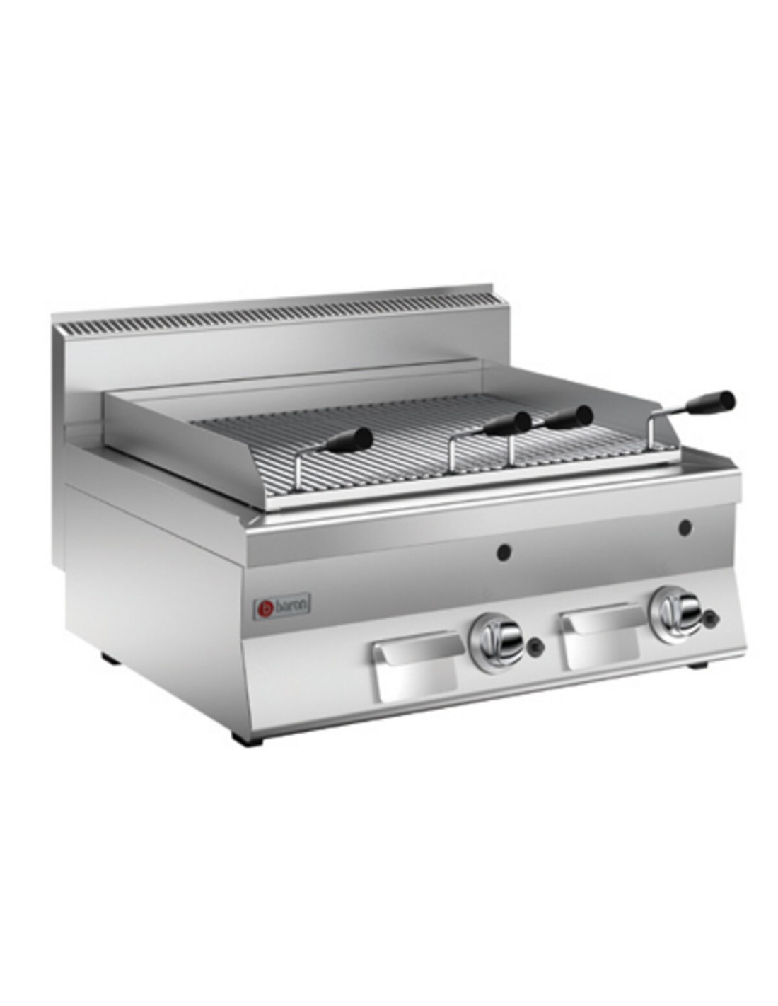Il piano di lavoro, dotato di bordi paraspruzzi è leggermente inclinato in modo da convogliare sughi, grassi e condimenti, nell’apposita bacinella di raccolta.