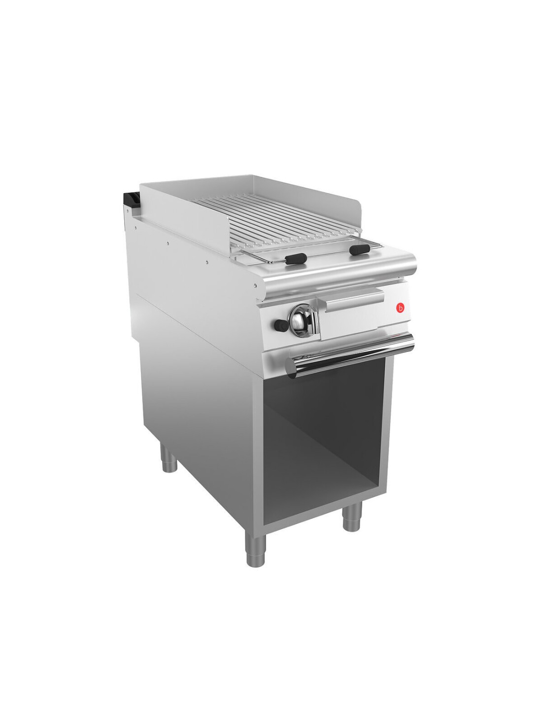Griglie Pietra lavica: 4 Tipi Griglie disponibili: carne, pesce, mista in acciaio inox e versione in ghisa reversibile carne/pesce, Regolazione altezza griglia per la gestione di diversi tipi di cotture, più facile da pulire e più capiente, Alzatine perimetrali paraspruzzi, Canalina con foro di scarico e cassetto e raccolta grassi e residui estraibile, Canalina raccogli grasso più ampia e saldata sul piano, Cassetto interno per la raccolta dei residui carboniosi, Temperatura regolabile fino a 350°C, regolazione della potenza è affidata a un rubinetto modulabile a funzionamento continuo per adattare il calore della piastra in base al tipo di cottura, Accessorio UMIDIFICATORE per la gestione ottimale di più tipi di cotture