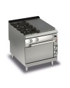 Unico bruciatore centrale ad alto rendimento che determina zone termiche differenziate sul piano con una concentrazione di massimo calore al centro e temperature decrescenti nelle zone periferiche. Piano interamente stampato e ricavato da lastra di acciaio inossidabile di grosso spessore. Griglie in ghisa smaltata a razze lunghe per un agevole spostamento delle pentole tra un fuoco e l’altro. Bruciatori in ghisa di elevata potenza 3.5- 5.7- 7 e 10 kW. Fiamma pilota protetta con protezion amovibile e facilmente lavabile. Grazie alla certificazione di impermeabilità ai getti d’acqua (IPX5) ottenuta attraverso test specifici, manopole e sottomanopole possono essere lavate a fine giornata di lavoro, senza comprometterne la funzionalità e la sicurezza. La barra frontale è un punto di appoggio confortevole per il cuoco; permette di rimanere alla giusta distanza di sicurezza dal piano di lavoro e quindi protegge da urti accidentali con quanto appoggiato sui piani e allo stesso tempo anche le manopole.