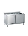 Esecuzione in acciaio Inox Scotch-Brite.Piano di lavoro con invaso stampato. Alzatina posteriore h