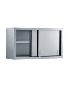 A GIORNO IN ACCIAO INOX AISI 430 Con ripiano intermedio regolabile CHIUSI IN ACCIAO INOX AISI 430 Con ripiano intermedio regolabile, FORATO nei modelli con scolapiatti, con porte SCORREVOLI Frontale con impugnatura incassata con controporta interna, scorrimento superiore con cuscinetti. Scorrimento inferiore con pattino in PVC su guide a doppio canale in PVC BATTENTI Frontale con impugnatura incassata, con controporta interna, chiusura con magneti e apertura a rotazione Esecuzione in acciaio Inox Scotch-Brite.Ripiano interno regolabile in altezza con pieghe salvamani. Porta battente insonorizzata. Completi di staffe per fissaggio a parete.