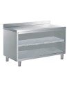 Esecuzione in acciaio Inox Scotch-Brite. Piano di lavoro. Alzatina posteriore h 100 mm.