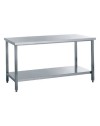 Tavolo in acciaio AISI , robusto e igienico, ideale per ambienti commerciali o industriali. Design funzionale con materiali resistenti e duraturi.